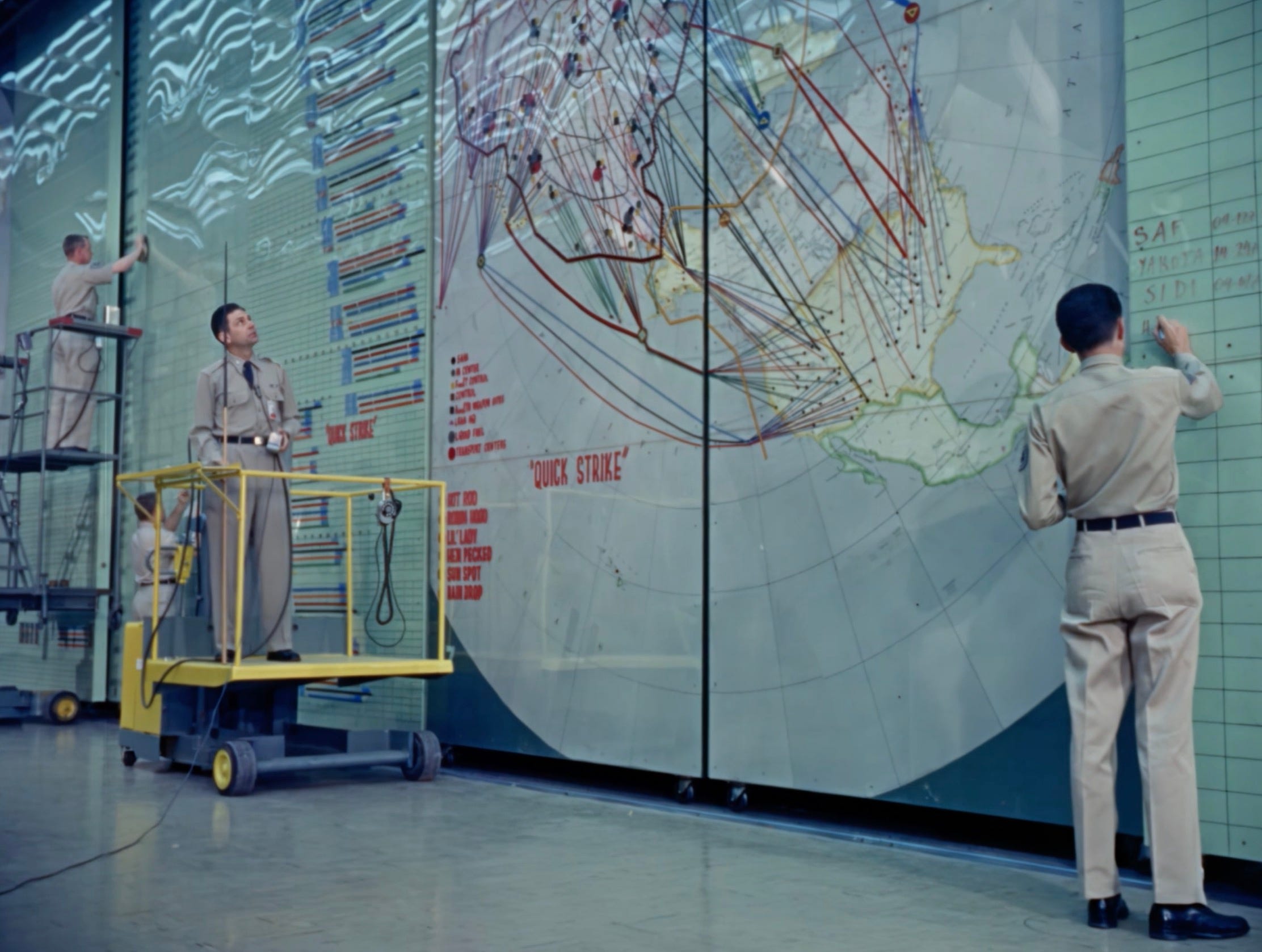 There is something, too, I think, in the fact that these 1950s plans were all bomber-based: that human beings, at every step of the way, would need to carry out this horror, this atrocity. It was not a “push button” affair; while the system’s wheels were well-oiled, as the film makes clear, it was hardly automatic. You can’t blame the logic of machines for this one.