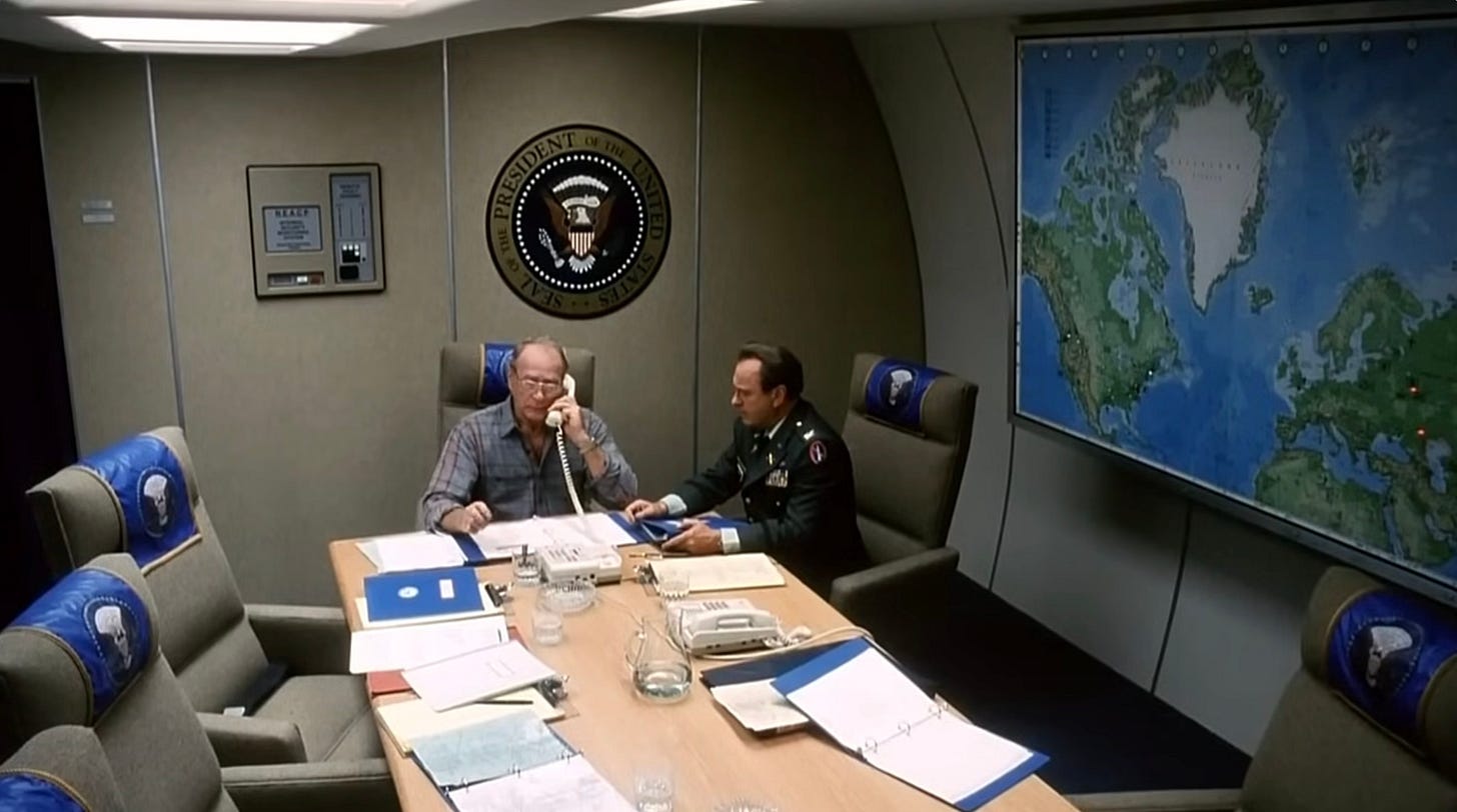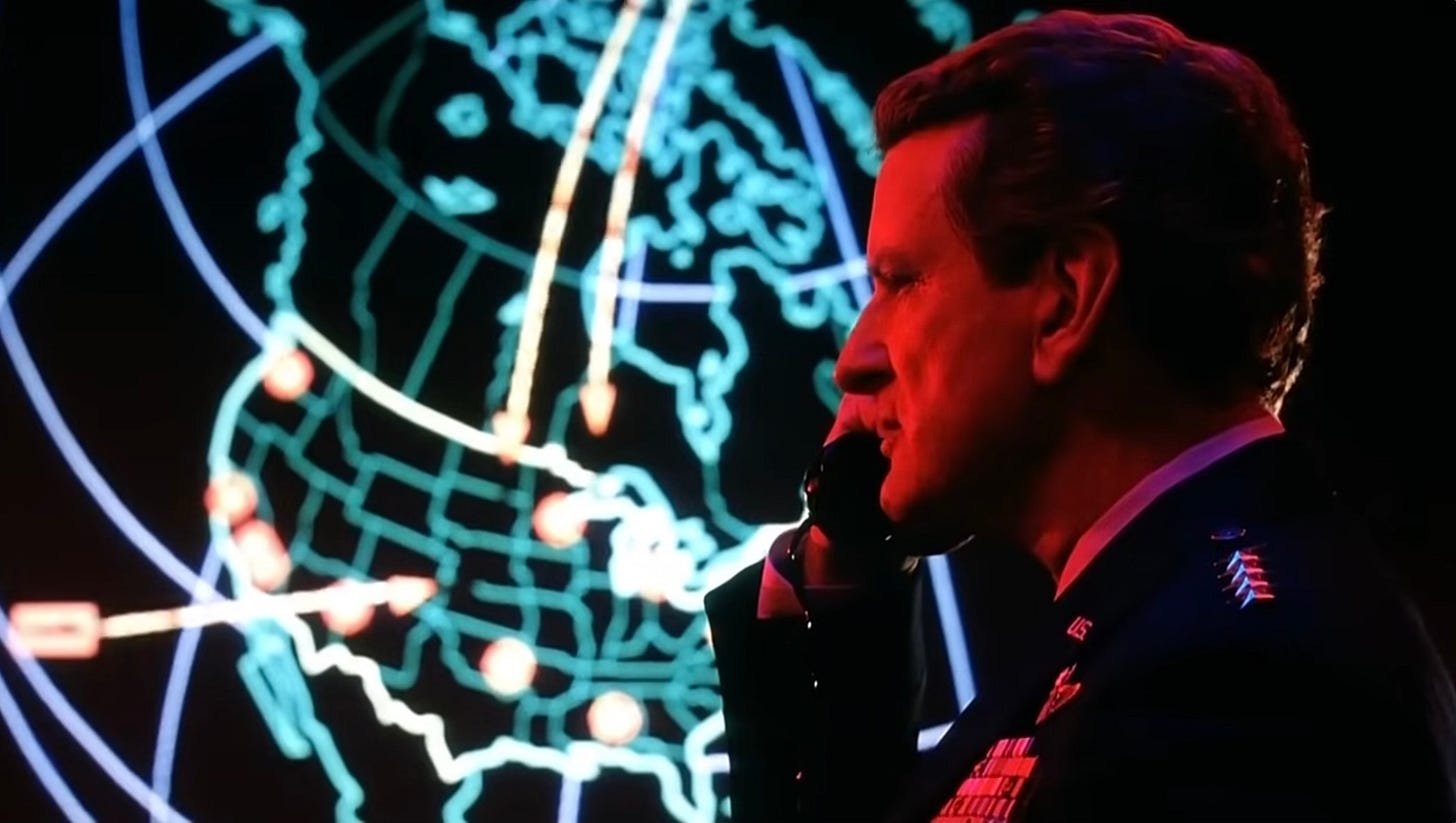 In the case of the film, jostling for authority among the high end of the chain of command provides much of the film’s dramatic material. And who is to say how anyone would react to such a situation? In the film, many millions of Americans have already been killed by the war in practically an instant — how would any of us react to that, given these terrible options?