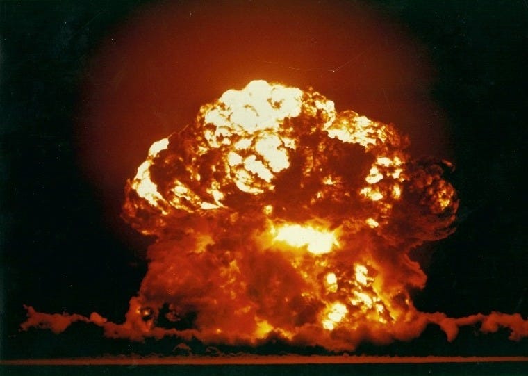 One of the most infamous types of Cold War nuclear weapons testing performed are “military exercises,” where nuclear detonations coincided with troop movements, done in order to determine what impact the viewing of a distant — but not too distant — nuclear explosion had on troop morale, ability to follow orders, and ability to execute standard combat maneuvers. The fear was that perhaps soldiers would become shocked, overly afraid, and undisciplined in the face of such spectacle, with dire consequences for battlefield maneuvers in an age of tactical nuclear weapons.